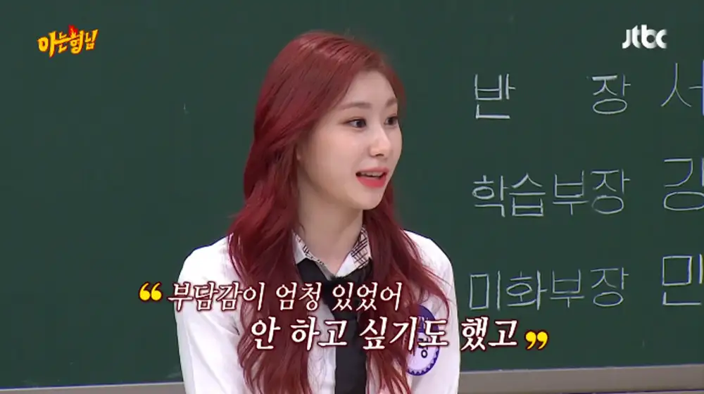 ITZY की चेरयोंग ने हाल ही में कबूल किया कि जब उन्हें अपनी बहन के साथ मंच पर प्रदर्शन करना पड़ा तो वह अभिभूत महसूस कर रही थींचयेओनIZ*ONE से.