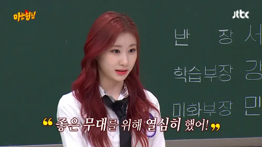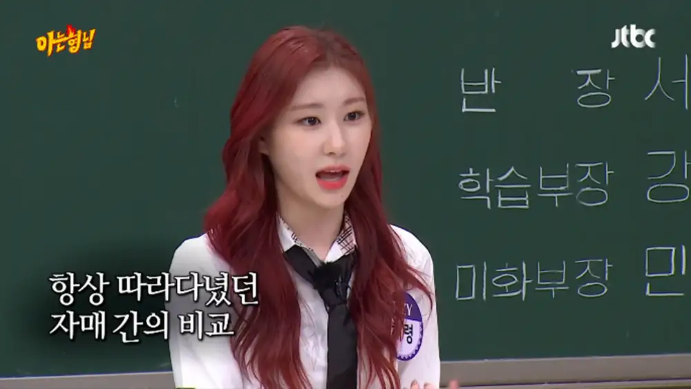 सेगमेंट के दौरान, चेरयोंग ने उस कहानी को साझा किया जब उसे और उसकी बहन, चेयॉन को एक स्कूल खेल कार्यक्रम में नृत्य प्रतियोगिता में प्रतिस्पर्धा करने के लिए क्रमशः सफेद टीम और नीली टीम के प्रतिनिधियों के रूप में चुना गया था।